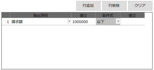 | 7 | 条件を追加したのに、指定した条件で抽出されない。 | 「抽出項目」「値①」「条件式」のいずれかが指定されていない場合は条件から外れます。 (※メッセージ欄にその旨が表示されますのでご確認ください。) |