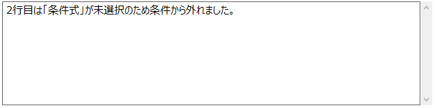 ▼条件式に誤りがある場合、以下のようにメッセージが表示されます。
